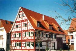 Vielen Einwohnern ist dieses Gebäude als "alte Post" bekannt, weil dort über Jahrzehnte die Poststelle eingerichtet war. Das zu Anfang des 18. Jahrhunderts erbaute Gebäude zählte zu den schönsten und am besten erhaltensten Fachwerkhäusern in Riederich. Dank den immensen Bemühungen eines privaten Investors erstrahlt das Gebäude seit 1999 in neuem Glanz. Über dem Türsturz ist die Jahreszahl 1708 vermerkt. Forschungen haben ergeben, dass das Bauernhaus wohl zwischen 1703 und 1708 entstand. Die Konstruktion des Gebäudes ist in fränkischer Weise gezimmert. Hierbei handelt es sich um spezielle Zapfverbindungen. Das Sichtfachwerk weist Gestaltungselemente wie sogenannte Andreaskreuze auf. In der ehemaligen Stube ist eine Stabfelddecke, eine Abwandlung der Kassettendecke, zu finden.