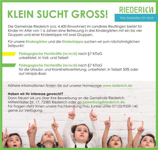 Ihre aussagekräftige Bewerbung an die Gemeinde Riederich, Mittelstädter Str.